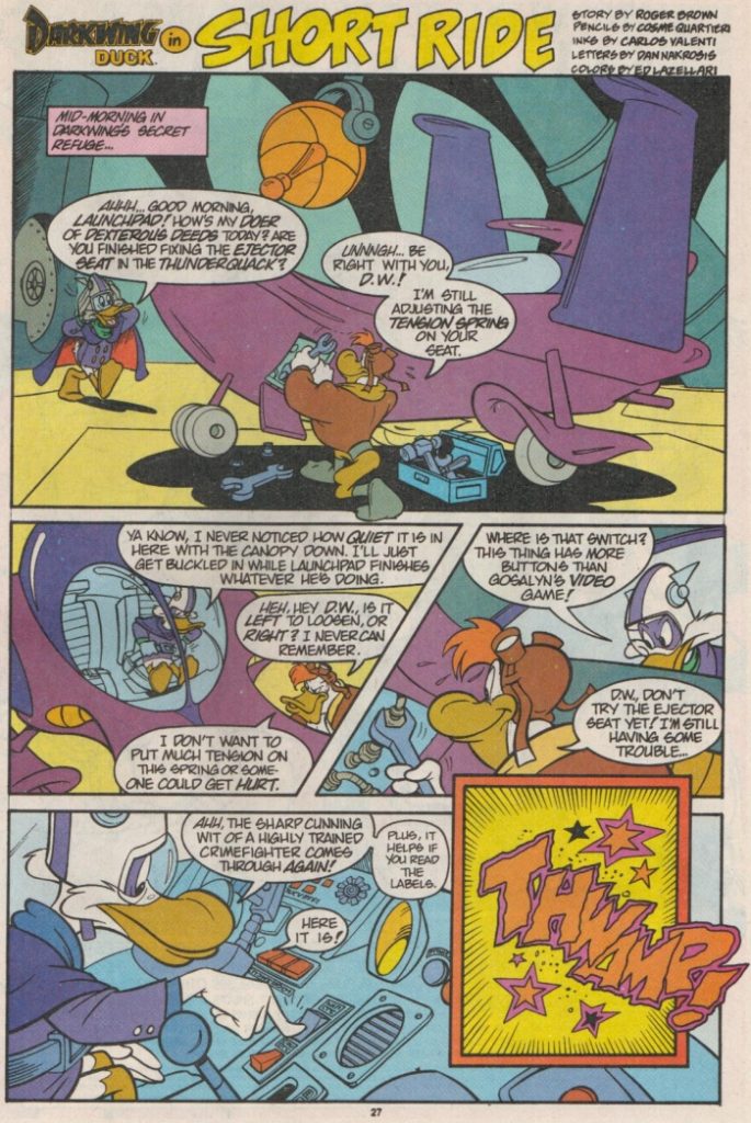 Short Ride By Mal 20152025 Issue 4, February 1995. DW learns he should listen to Launchpad on all things plane-related. Cover Page 1 Page 2