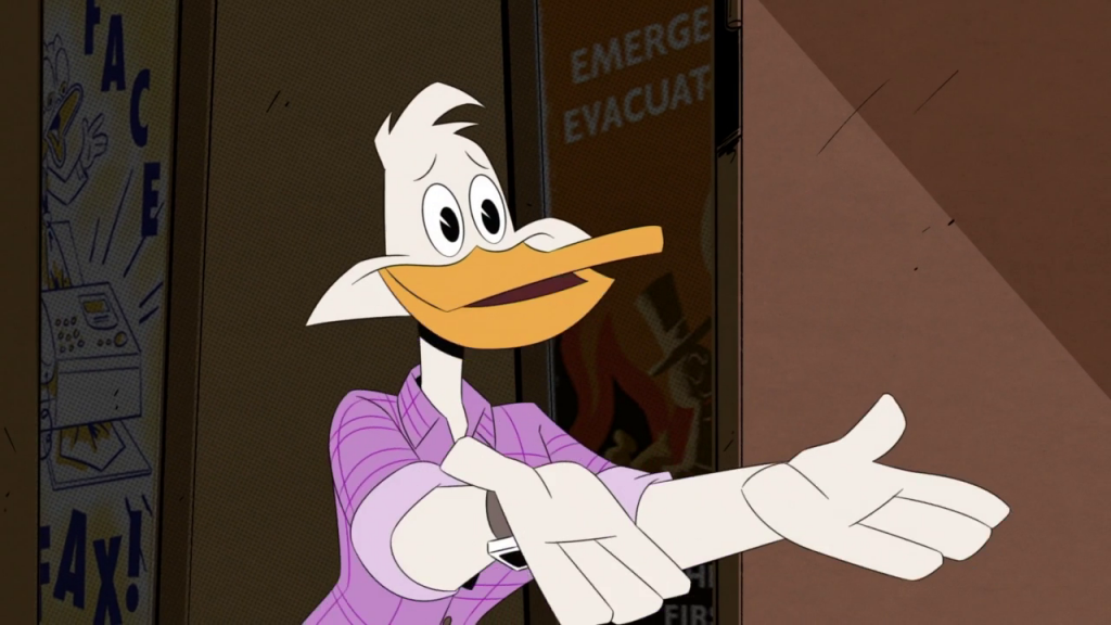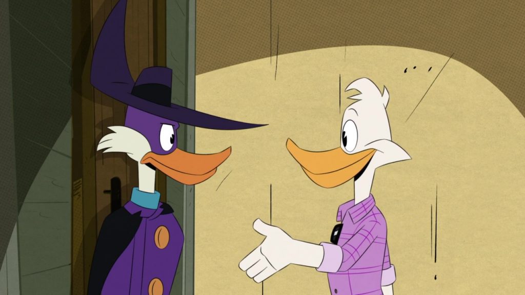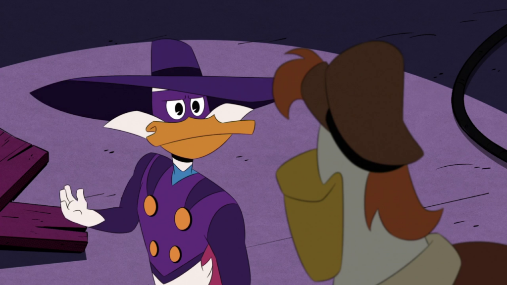 Drake Mallard to Jim Starling, “The Duck Knight Returns!”