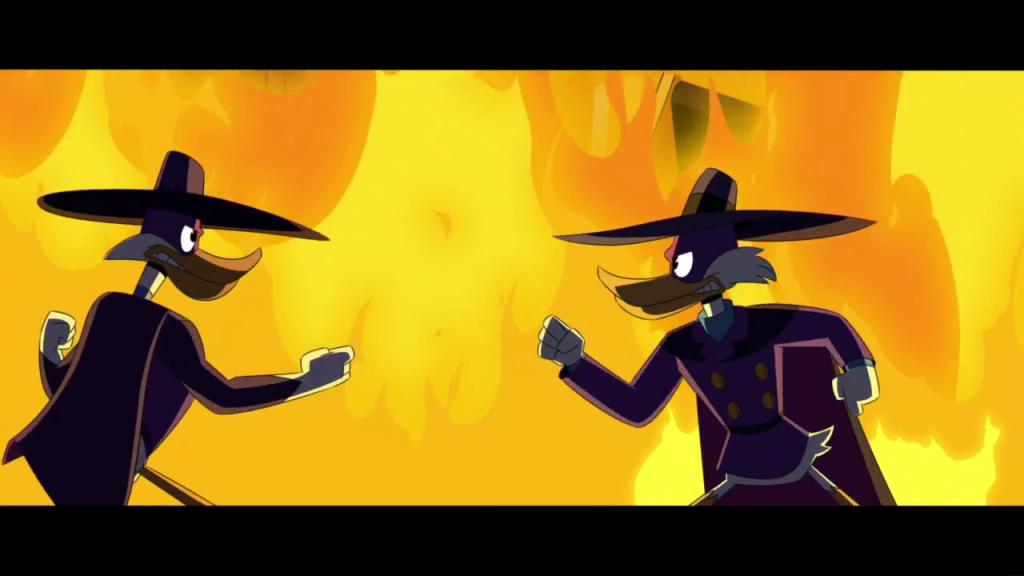 Drake later returns to his trailer to find Launchpad McQuack attempting to lock him inside so that Jim can replace him. The two engage in hand-to-hand combat but quickly become fast friends due to their shared love of the Darkwing Duck franchise. Together they decide that Drake should work alongside Jim to make the best Darkwing Duck movie possible.
