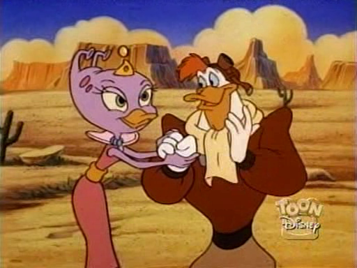 Although Darkwing was not interested in a sidekick at the beginning of the series, the two slowly forge a close bond of friendship. Launchpad is content with being a sidekick and helping out on the sidelines, though on a few occasions has ended up in the spotlight. Sometimes he will serve as a decoy for Darkwing by dressing up in an identical costume (which once led to everyone in St. Canard thinking Darkwing’s secret identity was LP). He has a monstrous appetite and spends most of his spare time eating or tuning up Darkwing’s RatCatcher and The ThunderQuack. He has saved Darkwing’s life on numerous occasions.