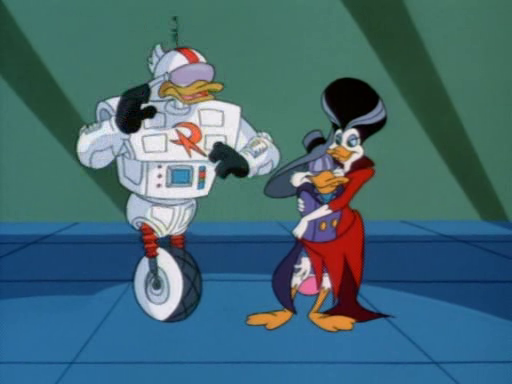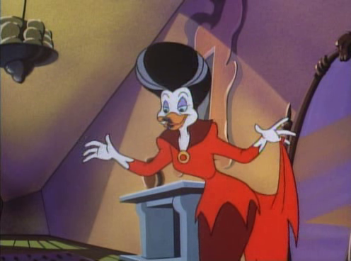 Morgana Macawber makes her debut in the episode “Fungus Amongus”. She began as an evil businesswoman stealing pizza toppings for her company Macawber Mushrooms. When Darkwing is investigating the crime, it’s love-at-first-sight. The two struggle to cope with their feelings, with Darkwing unable to put aside the fact she’s a villain. Eventually however, Morgana gives up her life of crime and the two begin a long-term relationship. She is one of the few characters who knows Darkwing’s secret identity.